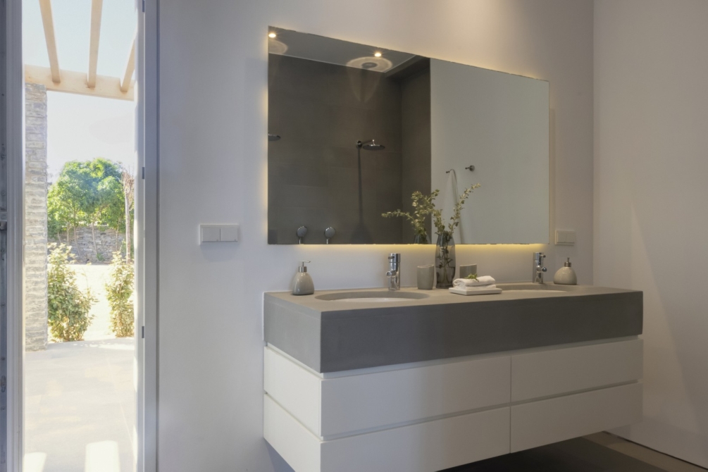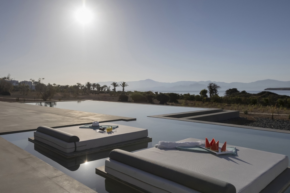 Villa Aeolia I is equipped with advanced Smart Home technology, air conditioning and underfloor heating, Smart TVs, and high-speed Wi-Fi in all areas. Entertainment and relaxation are enhanced through an indoor and outdoor music system, while peace of mind is ensured with a safe box, security and smoke alarms, a full alarm system, and a circumferential camera system.