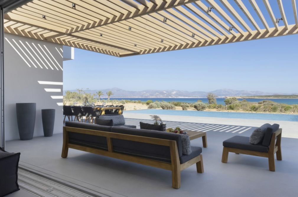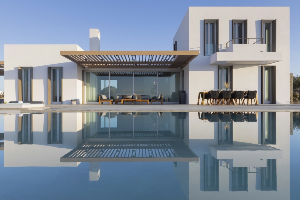 Set just 15 meters from the white-sanded shores and the green-blue waters of Santa Maria Beach, Villa Aeolia I is a refined beachfront retreat that combines modern Cycladic architecture with high-end comfort and seamless indoor–outdoor living. Located only 10 minutes from Naoussa, the villa offers privacy while remaining close to the island’s vibrant lifestyle.