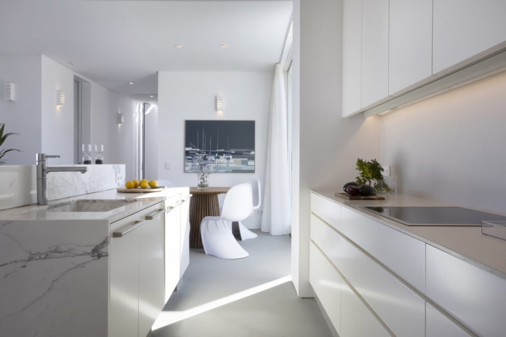 The villa boasts a fully equipped kitchen with premium home appliances and gadgets, including a dishwasher, refrigerator-freezer, kitchen stove, oven, washing machine/dryer, flat iron and ironing board, as well as a full selection of small appliances such as an espresso coffee machine, filter coffee machine, toaster, and multi-purpose kitchen devices, ensuring a true home-away-from-home experience.